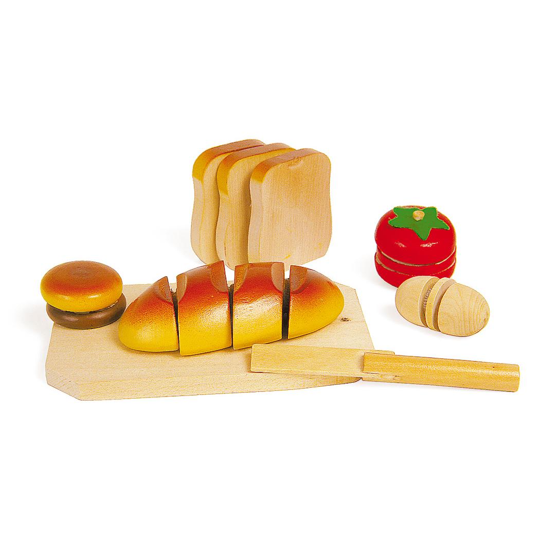 Een prachtige snijplank, een brood, boterhammen en een tomaat kunnen door middel van het houten mes door midden worden gesneden. Een ideale aanvulling op al je keukenartikelen en bijzonder goed te gebruiken bij onze speelgoed keukens. De onderdelen zitten aan elkaar bevestigd door klittenband.