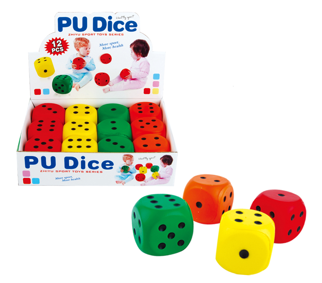 Zachte en veilige dobbelsteen met een lengte, breedte en hoogte van 6 centimeter. Verkrijgbaar in verschillende kleuren. Welke kleur je krijgt is een verrassing. Geschikt voor kinderen vanaf 3 jaar.