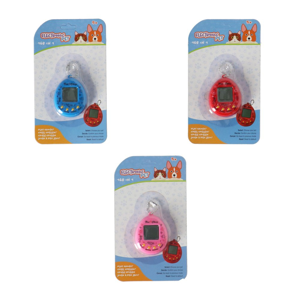 Elektronisch Diertje 3 Assorti Blister. Elektronisch huisdiertje om mee te spelen en voor te zorgen, in de stijl van de Tamagotchi’s uit de jaren 90. Keuze uit 168 huisdiertjes. Geschikt voor kinderen vanaf 5 jaar. Meerdere uitvoeringen beschikbaar.