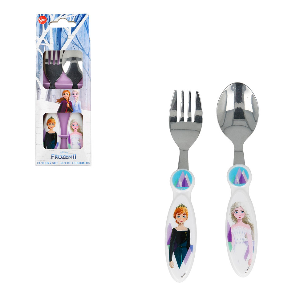 Set bestaande uit een metalen lepel en vork, zodat de kleintjes in huis leren hoe ze bestek voor volwassenen kunnen gebruiken. Dankzij de afgeronde vormen kan dat op een veilige manier.