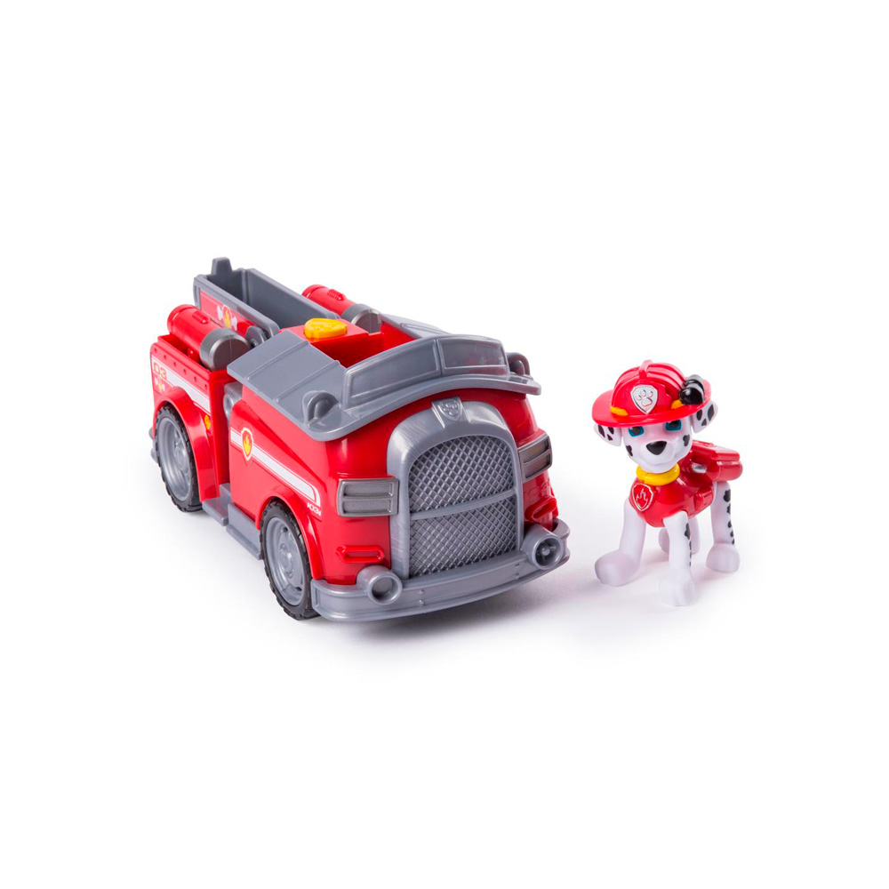 PAW Patrol Marshall in actie! Ga op een spannende missie samen met je favoriete Paw Patrol pup Marshall en zijn transformeerbare brandweerwagen. Plaats Marshall op de bestuurdersstoel, draai aan de wielen en red de dag! Is er een groot probleem dat opgelost moet worden? Geen probleem! Druk op de badge op de wagen en transformeer de brandweerwagen in een reddingsvoertuig! De waterkannonen zullen geactiveerd worden: tijd voor actie! Welke missie ga jij oplossen? Met de Paw Patrol Marshall Transforming Vehicle is geen een missie te groot.