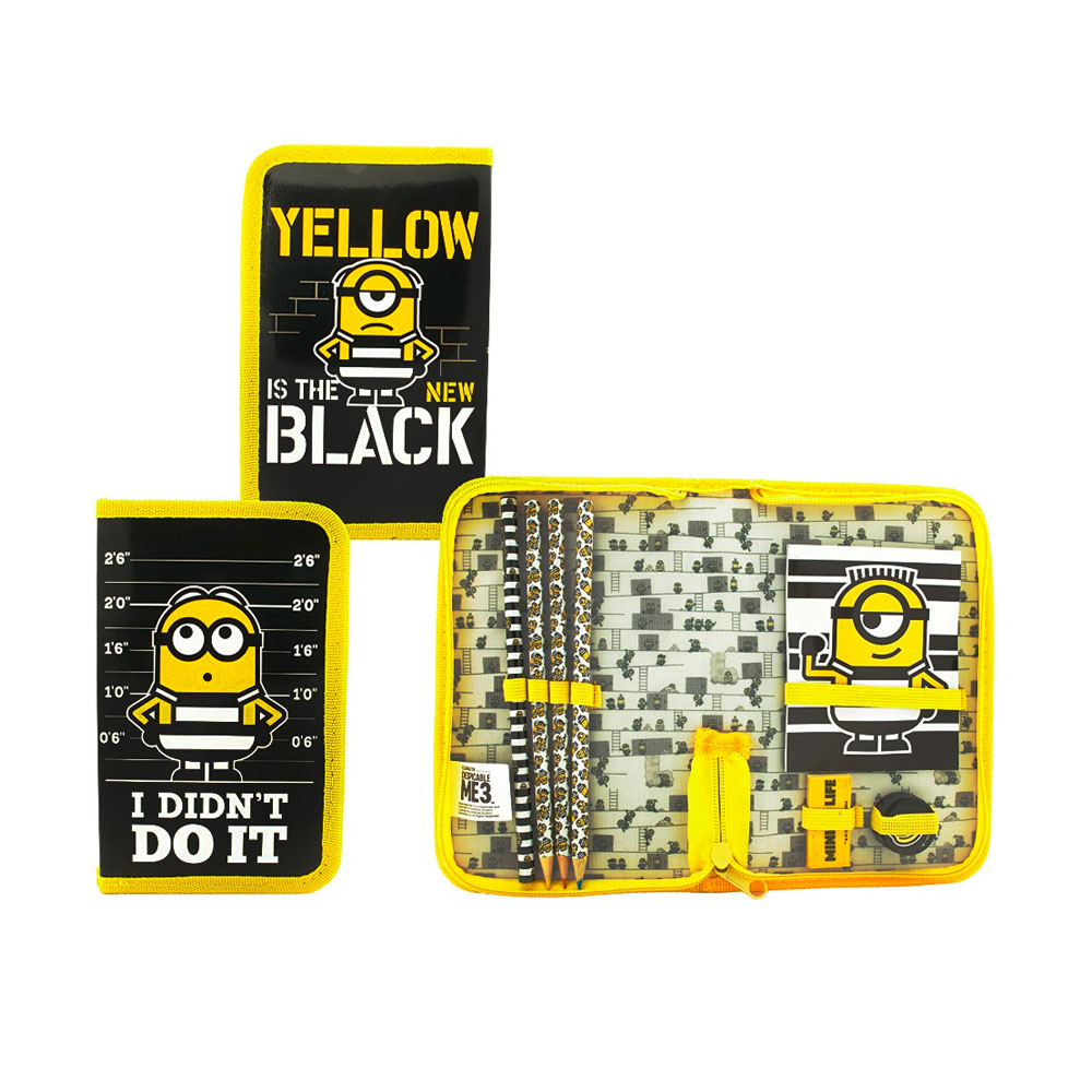 Ook een Minions Pen, Minions notieboekje, Minions liniaal, Minions gum en Minions puntenslijper ontbreken niet aan deze etui. De Minion etui is voorzien van een leuke Minion print en heeft een ritsluiting.