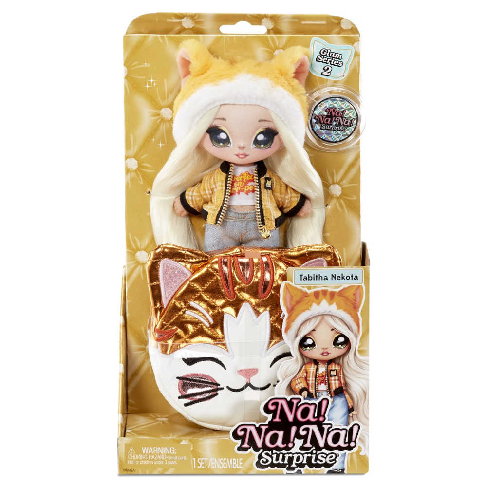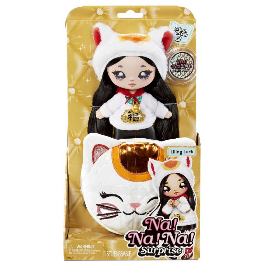 Geef je leven nog meer glamour met de gloednieuwe Na Na Na Surprise Glam 2-in-1 zachte modepop van serie 2! Je krijgt 2-in-1 met een zachte modepop én een verzamelbaar pompontasje van metallic stof met dierenthema en clip! De Glam-serie komt met opvallende poppenmode van metallic stof met dierenthema en een bijpassend tasje met een handige en schattige clip in de vorm van een dier om het aan je rugzak of aan een grotere tas te hangen. Na Na Na Surprise-poppen zijn de allereerste zachte, poseerbare modepoppen met geprint gezichtje en geprinte modedetails.