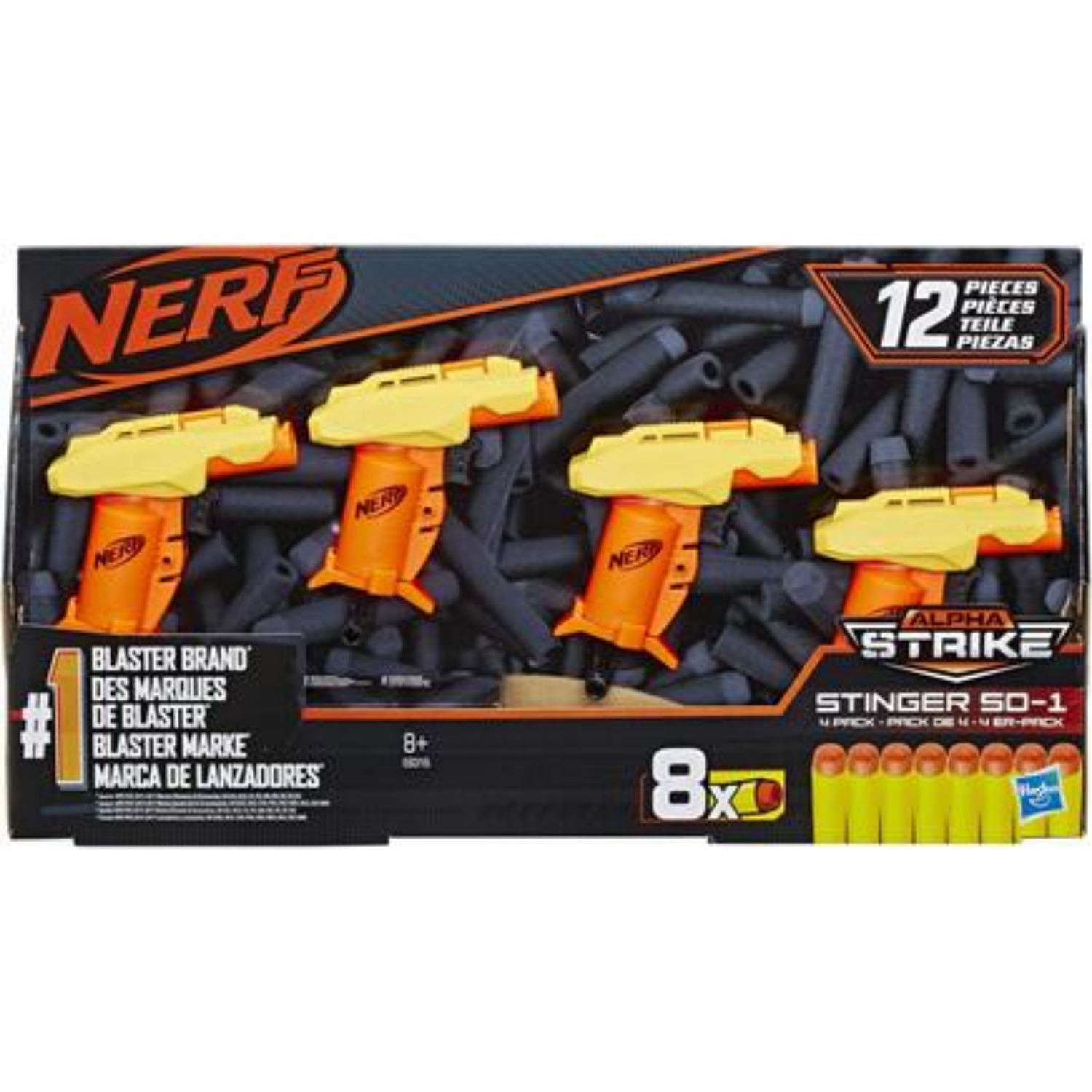 Maak je klaar voor de strijd met de NERF Alpha Strike 4x Stinger pack met 8 darts. Geschikt voor kinderen vanaf 8 jaar.