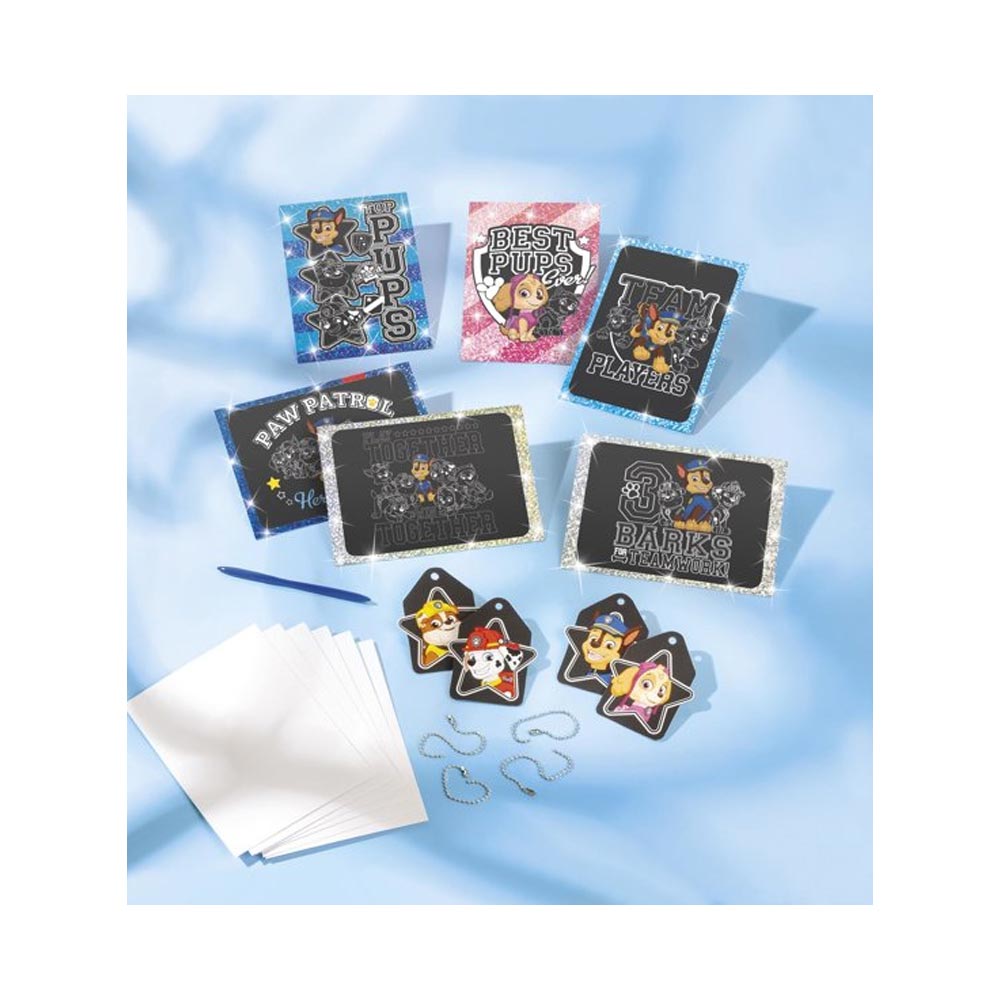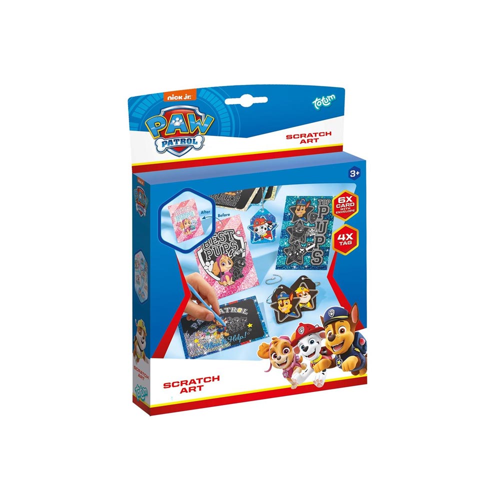 Maak prachtige creaties met deze Paw Patrol scratch-set! Gebruik het krasstokje om de zwarte laag weg te krassen en ontdek de felle kleuren die eronder verborgen liggen. Gebruik de meegeleverde sjabloonkaarten om de mooiste afbeeldingen van Paw Patrol te maken.