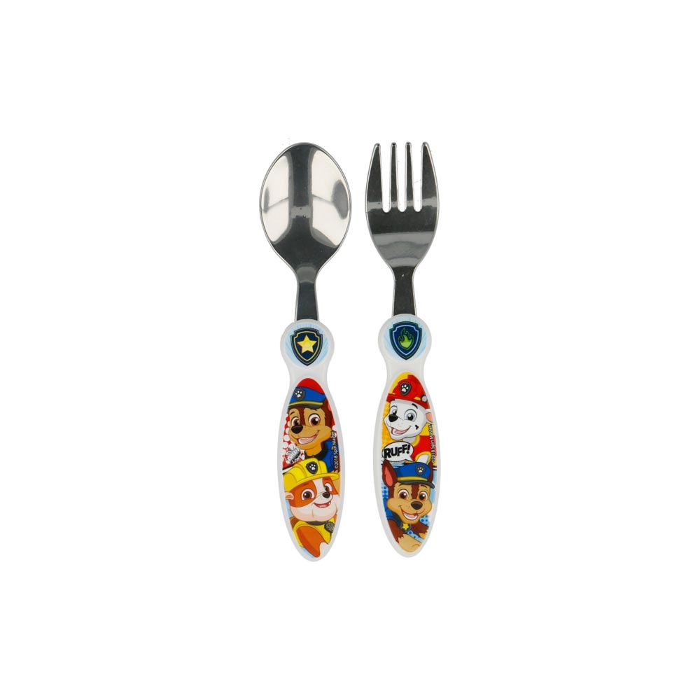 Set bestaande uit een metalen lepel en vork, zodat de kleintjes in huis leren hoe ze bestek voor volwassenen kunnen gebruiken. Dankzij de afgeronde vormen kan dat op een veilige manier.