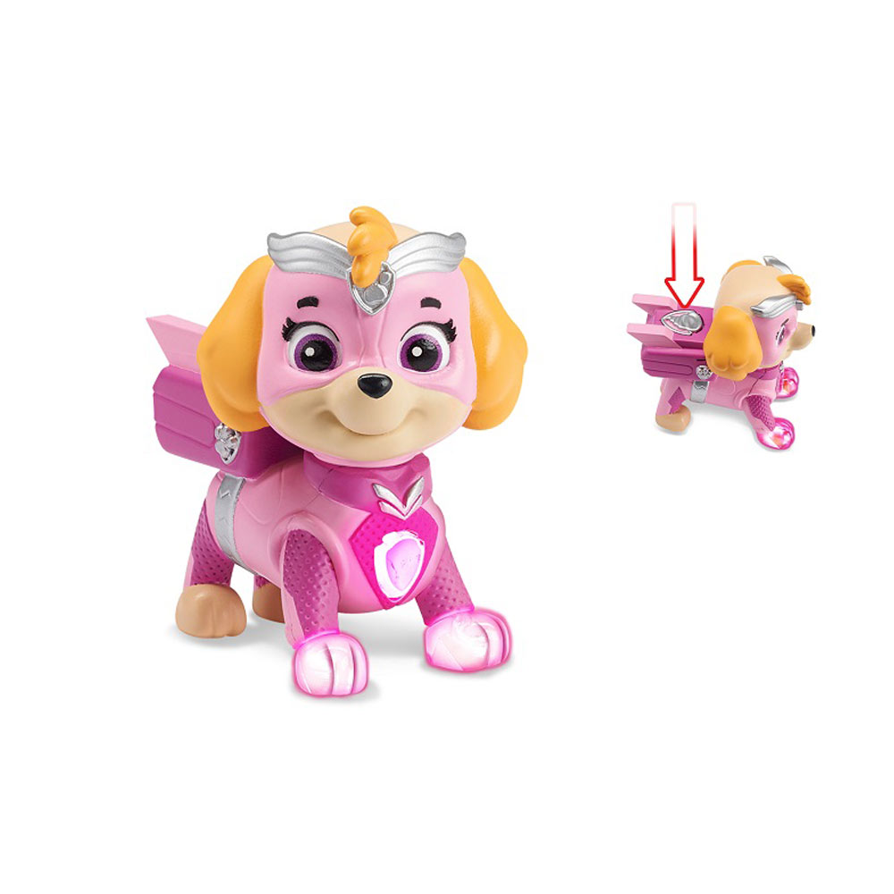 Beleef spannende avonturen met Skye! Wanneer je op haar speciale action button op haar rug drukt activeer je de verlichting in de action badge.
