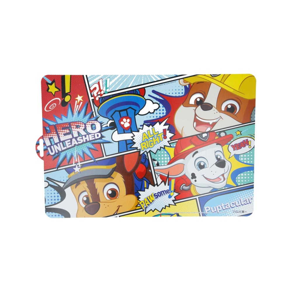 Bescherm de tafel met deze mooie placemat. Op de placemat staan mooie afbeeldingen van de Paw Patrol pups Chase, Rubble en Marshall in comics-stijl.