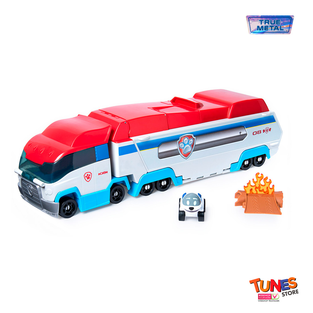 Ga op avontuur en beleef de spannende Paw Patrol missies met deze vernieuwde en metalen Paw Patrol Die-Cast Paw Patroller.  Open de in metaal en kunststof uitgevoerde  vrachtwagen en race samen met je Paw Patrol pups naar je bestemming! Wanneer je de Paw Patroller vrachtwagen opent, verandert hij in een gaaf circuit. Lanceer de True Metal voertuigen  ( apart verkrijgbaar) en haast je naar het noodgeval. Laat je door niets tegenhouden!  Zodra je de spannende Paw Patrol missies hebt uitgevoerd, kan je nog even bijtanken en het True Metal voertuig repareren op het platform naast de vrachtwagen. Zo ben je weer helemaal klaar voor de volgende missie!