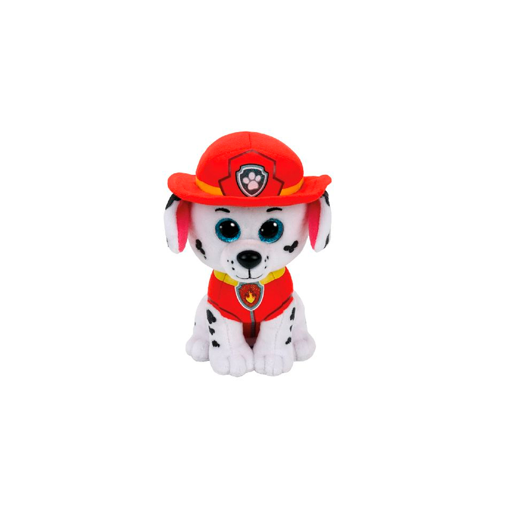 Pluche Paw Patrol Marshall knuffeltje in een rode outfit.
