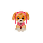 Pluche Paw Patrol Zuma knuffeltje in een oranje outfit.