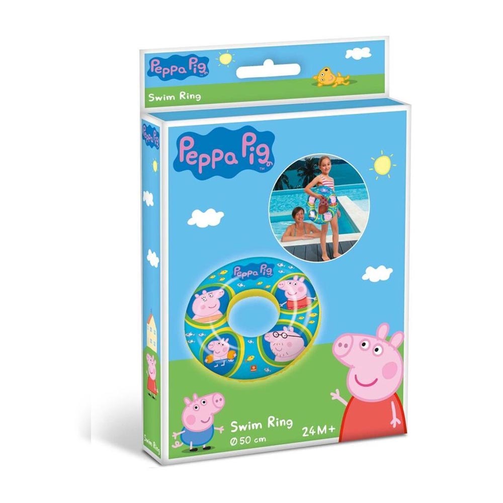 Zwemmen wordt nog leuker als je een zwemband meeneemt naar het zwembad! Op deze mooie zwemband staat Peppa met haar familie afgebeeld. De ring heeft een doorsnede van 50 cm.