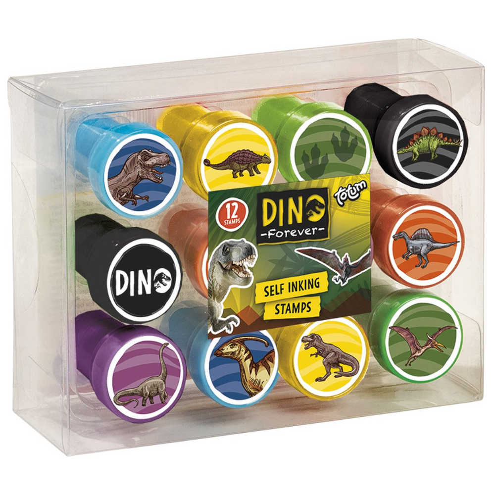 Een stempelset bestaande uit 12 stempels met dino thema. Geschikt voor kinderen vanaf 3 jaar oud.