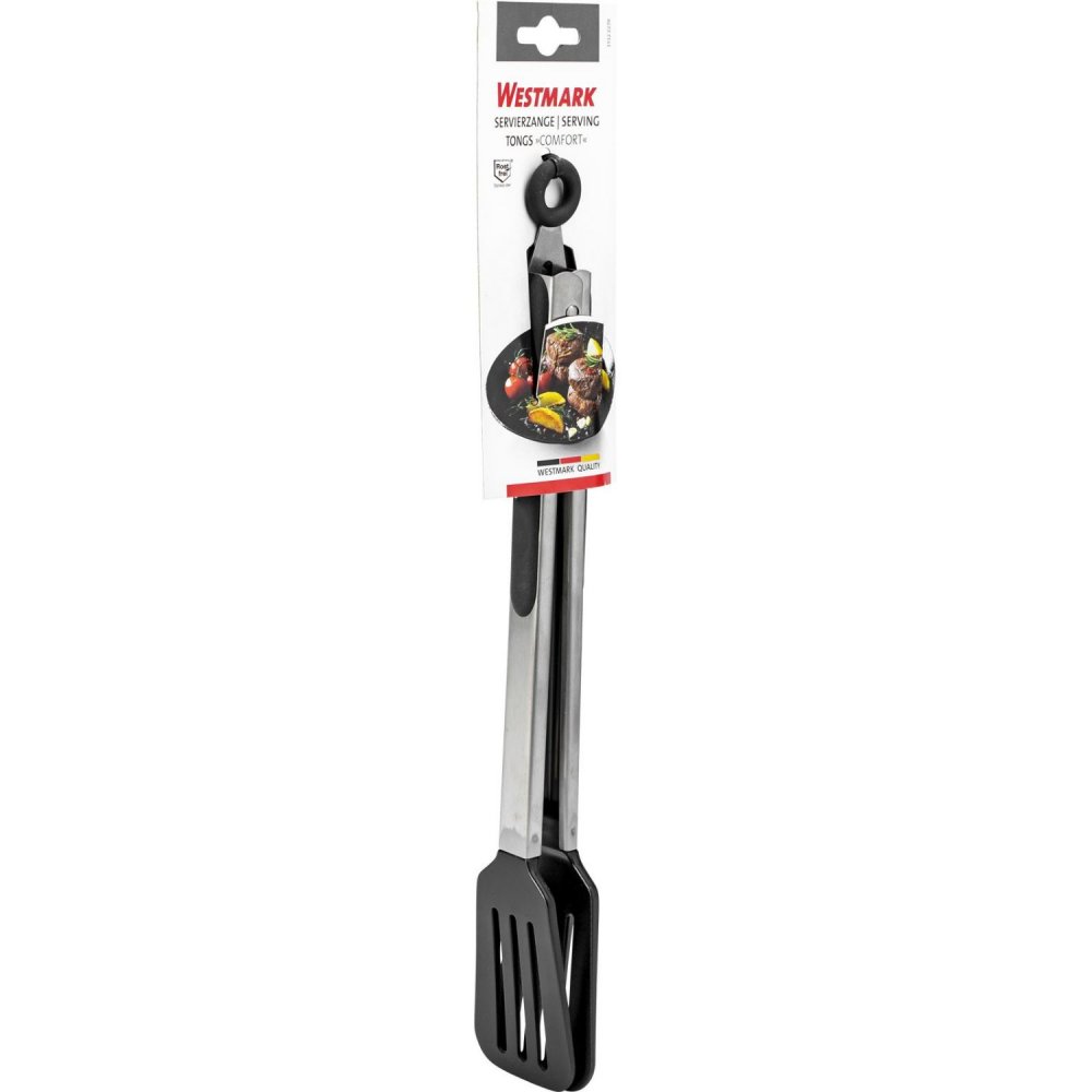 Met onze serveertangen wordt het bereiden en serveren van eten kinderspel. De extra grote uiteinden van hoogwaardig polyamide zijn ideaal voor potten en pannen met een antiaanbaklaag en de kunststof coating op de roestvrijstalen handgrepen minimaliseert het risico op brandwonden. Na gebruik kan de tang eenvoudig in de vaatwasser worden gereinigd. Lengte: 34 centimeter.